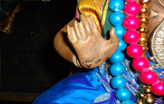 At Vaikunta, when Lord Sri Krishna blessed Sri Venkata Kavi with any boon that he desires, Sri Venkata Kavi expressed his desire to go to Sri Kalinga Narthana Perumal Kovil once again and wanted Sri Krishna to dance to the tunes of his songs. Thus Lord Sri Krishna and Venkata Kavi once again came to the Kalinga Narthana Perumal Temple, Oothukkadu. There, Lord Sri Krishna challenged Sri Venkata Kavi such that if Sri Venkata Kavi was not able to compose and sing to the various dancing postures of Lord Sri Krishna, he would turn into an idol. Thus at the behest of Sri Venkata Kavi, Lord Sri Krishna once again enacted the divine play of Kaliya Narthana. To the various dancing postures of Lord Sri Krishna, Sri Venkata Kavi started to sing his composure “Tham Theem Thanana Tham…….”. At one stage, Venkata Kavi was not able to compose to the dancing posture of Lord Sri Krishna. As per the challenge, Lord Sri Krishna turned into an idol in the dancing posture of Sri Kalinga Narthana Perumal. Sri Venkata Kavi, after accepting his defeat, worshipped the Lord to which Sri Krishna revealed to Sri Venkatasubba Iyer that he is none other than Sage Naradha and that he may go back to Vaikunta. Hearing this, Sri Venkatasubba Iyer wanted to know what Sri Krishna would be doing next. The Lord replied that throughout Kaliyuga Sri Krishna would be blessing His devotees who come to Oothukkadu as Sri Kalinga Narthana Perumal, thereby making Oothukkadu as Bhooloka Vaikunta. With folded hands, Sri Venkatasu bba Iyer implored to the Lord that instead of going back to Vaikunta, he would also like to make Oothukkadu temple as his abode. He further expressed his desire to continue singing in praise of the Lord, to which Sri Krishna granted him the boon. Every night to this day, Lord Sri Krishna as Sri Kalinga Narthana Perumal danced to the emelodies tones of Sri Venkatasubba Iyer, accompanied by His gopikas. Many people residing near the temple have heard the melodious sound of the padaswara eminating from the Lotus feet of Sri Kalinga Narthana Perumal at night. This is a testimony that Sri Kalinga Narthana Perumal along with Sri Venkatasubba Iyer, with His physical presence, has made Oothukkadu as Bhooloka Vaikunta. The entire clan of celestial devas also reside near the sanctrum sanctorum of the temple. As a result of the boon that Sri Venkatasubba Iyer obtained from Sri Kalinga Narthana Perumal, Sri Venkatasubba Iyer still continues to be the mediator between Sri Kalinga Narthana Perumal and His staunch devotees.
